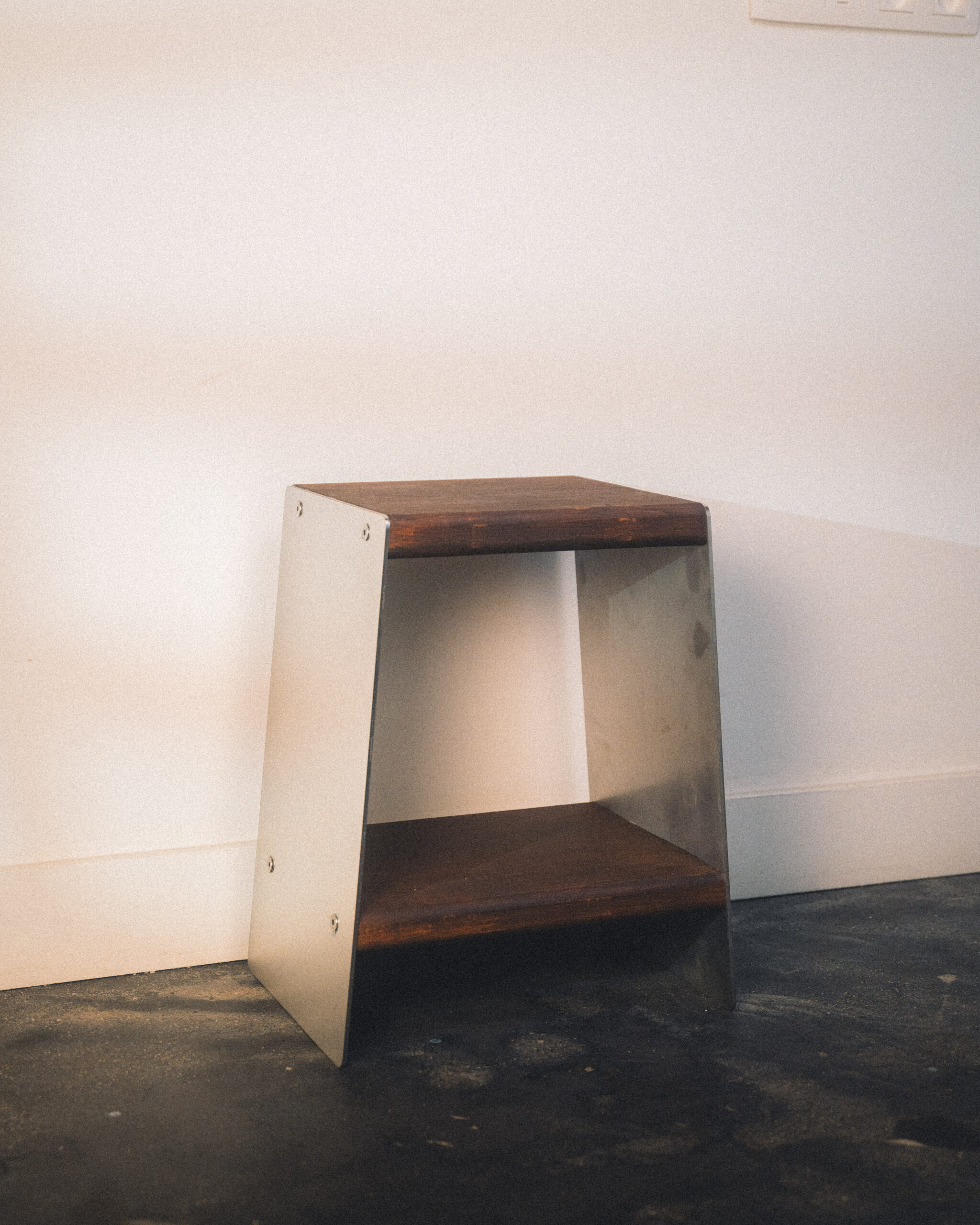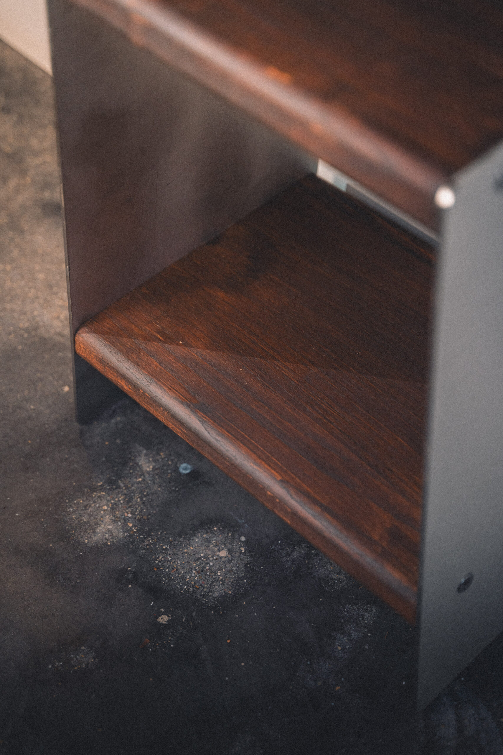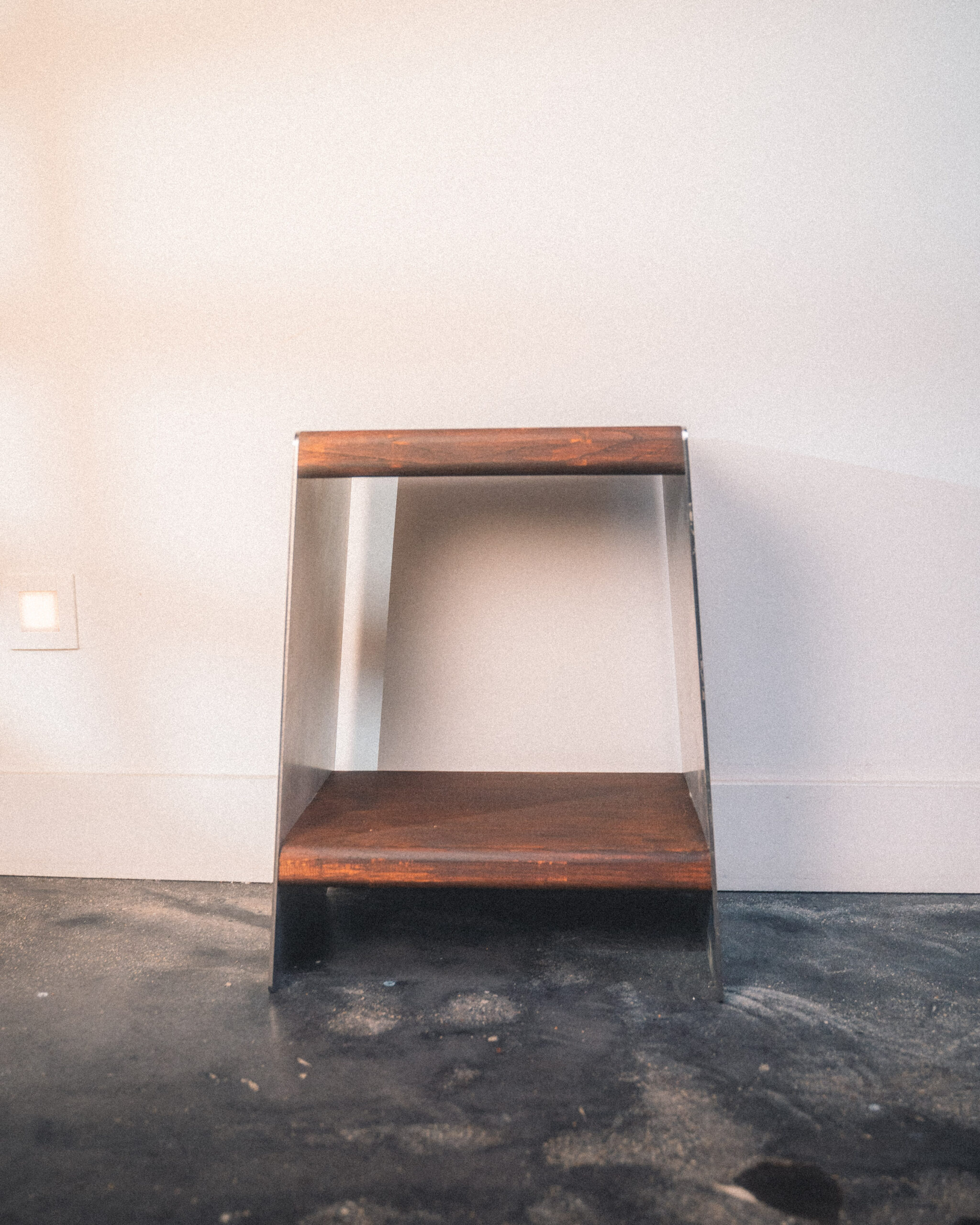 Les pieds en acier inoxydables de 4mm offrent une stabilité à la pièce et les plateaux en châtaigner teinté lui procurent de la chaleur.