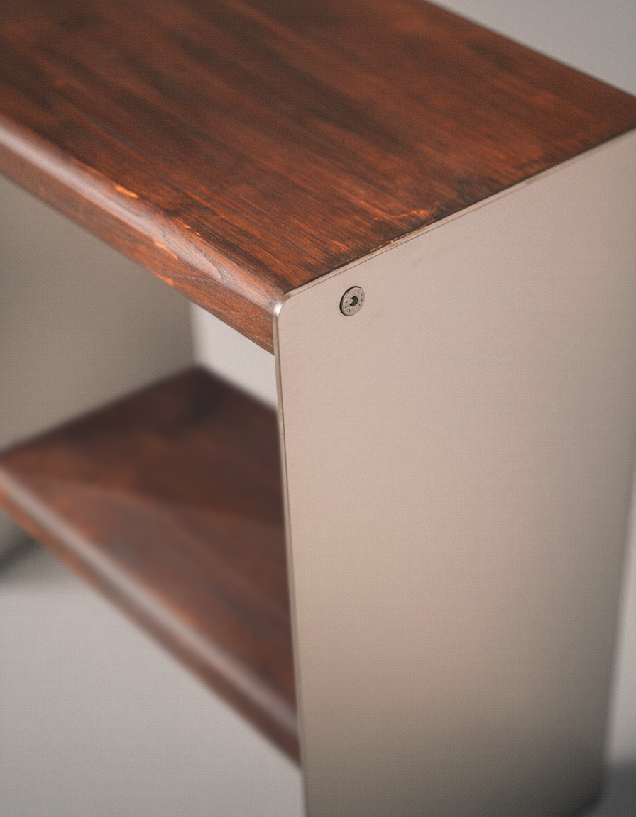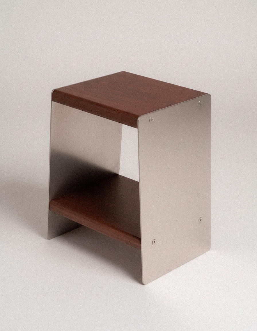 Pensée comme un objet à la fois fonctionnel et décoratif, la table peut servir de table d’appoint, de support pour des objets du quotidien ou de pièce centrale discrète mettant en valeur son environnement. Avec le temps, les matériaux évoluent subtilement : l’inox révèle toute la richesse de sa finition et le bois développe une patine naturelle, rendant chaque pièce unique et vivante.